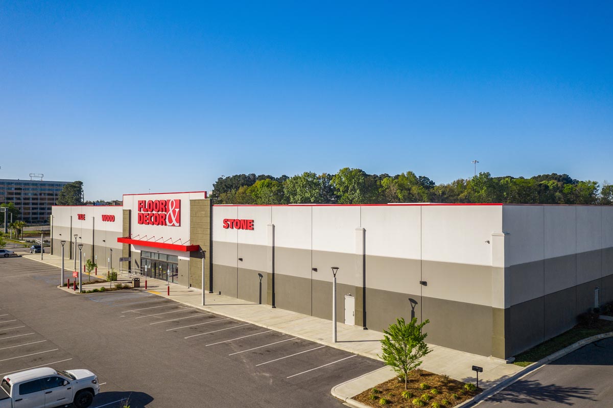 The Floor & Decor Charleston, SC project commenced in 2019. The new structure was built using cast-in-place tilt-up concrete panels, structural steel joist and deck system, and a 6’’ concrete interior slab on grade which was completed with a 8000 grit polished concrete finish. The project was completed in fourth quarter 2019.